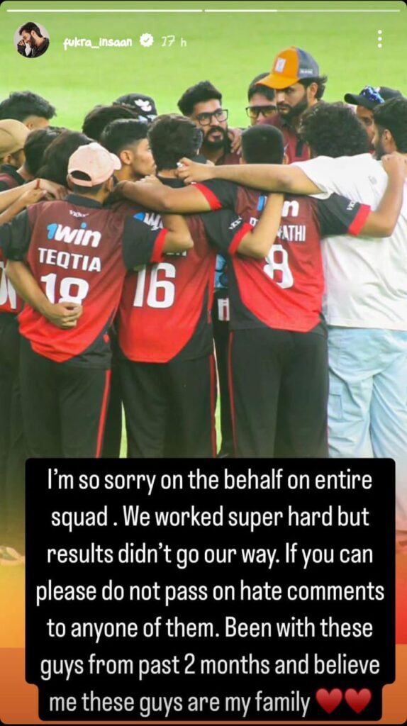 ECL 2024 : फुकरा इंसान ने मांगी जनता से माफी , कहा- “मेहनत की पर परिणाम सही नही रहा”