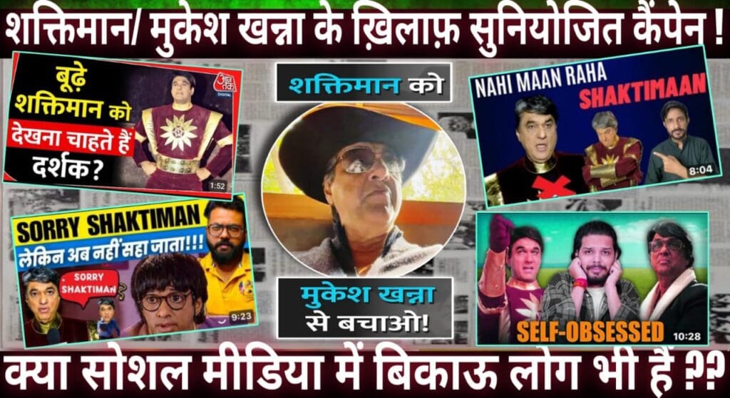 66 साल के अभिनेता Mukesh Khanna ने खुद के खिलाफ सोशल मीडिया में हुई ट्रोलिंग से निपटने के लिए अपने सोशल मीडिया अकाउंट्स का सहारा लिया है । उन्होंने अपनी पर्सनल पेज के सहित यूट्यूब में भी इस बात के खिलाफ अपना गुस्सा जताया है । इंस्टाग्राम में एक लंबा पोस्ट लिखते हुए उन्होंने एक तस्वीर शेयर की जिसमें उनके खिलाफ वीडियो बनाने वाले युटयुबर्स की वीडियो के थंबनेल को मुकेश खन्ना की तस्वीर के साथ एडिट किया गया था । उन्होंने इस तस्वीर में लिखा “Mukesh Khanna के खिलाफ संयोजित कैंपेन! क्या सोशल मीडिया भी बिकाऊ है ?”
